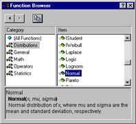 Access the Function Browser by clicking the Functions button in the Variable dialog. The Function Browser helps you quickly access different functions and their syntax and descriptions. Functions are grouped by Category for easier searching.